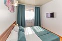 Одна двуспальная кровать и одна двухъярусная кровать. Уютные апартаменты площадью двадцать четыре квадратных метров идеально подходят для размещения двух взрослых и двух детей, либо трёх взрослых и одного ребёнка. Имеют уютную спальню.