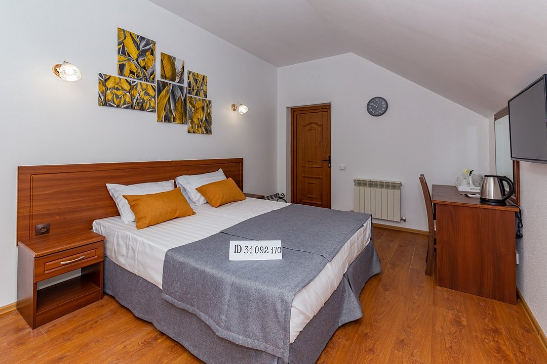 В номере: одна двуспальная кровать, шкаф с вешалками; чайник, холодильник; кондиционер, центральное отопление; ванная комната с душем и туалетом, тапочки, фен, ванные принадлежности. Телевизор с плоским экраном, спутниковое TV.