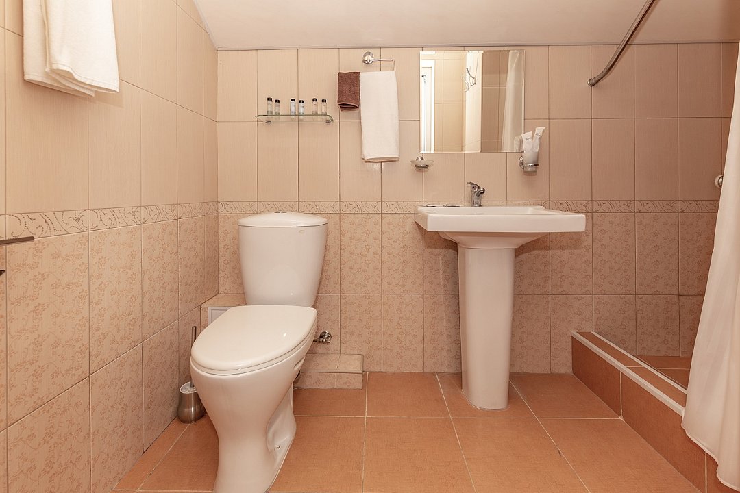 В номере: один односпальный диван, одна двуспальная кровать или две односпальные кровати, шкаф с вешалками; чайник, холодильник; кондиционер, центральное отопление; ванная комната с душем и туалетом, тапочки, фен, ванные принадлежности. Телевизор с плоским экраном, спутниковое TV.