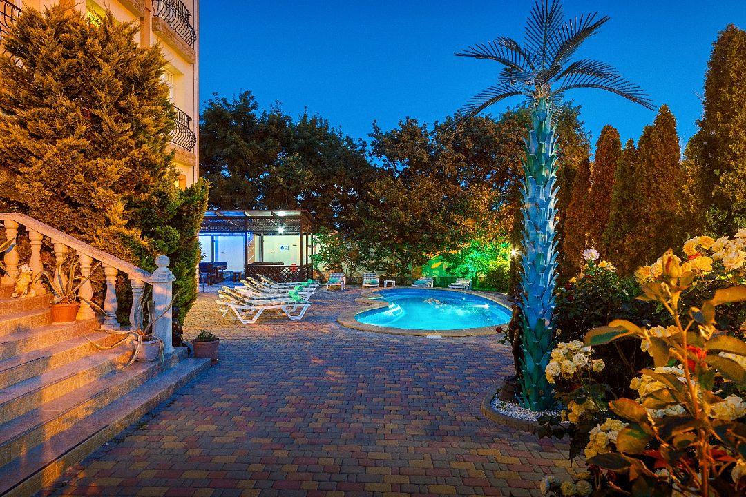 нояб. 2020 г.Лучшее место для отдыха на курорте!Были в конце сезона с семьей. Отличный отель, большая территория, мангалы и беседки для вечерних посиделок, детский городок, очень чистый бассейн комфортноф температурой. Сад утопает в цветах и розах с человеческий рост!) Рядом шикарный новый детский парк, магазины и рынок.