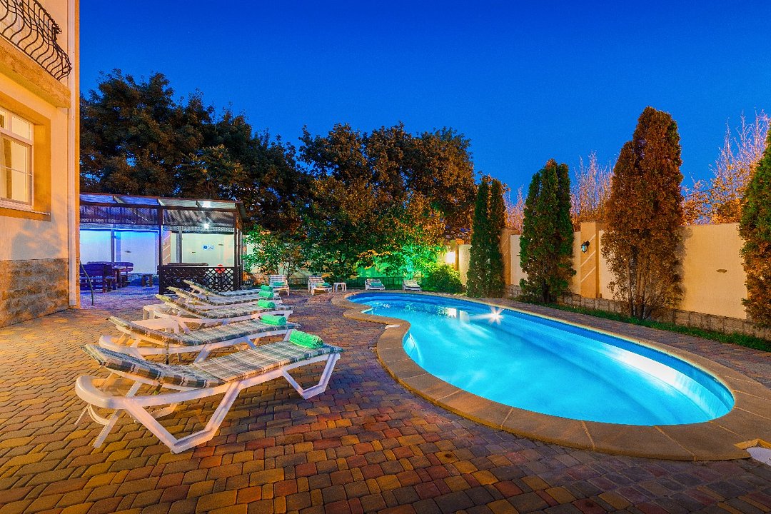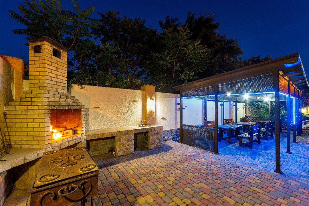 На территории гостевого дома находятся подогреваемый сезонный бассейн, детская игровая зона с горкой, домиком и батутом, мангалы, уютные беседки и просторная парковка (за дополнительную плату). Возможен заказ трансфера от аэропорта и ж/д вокзала.