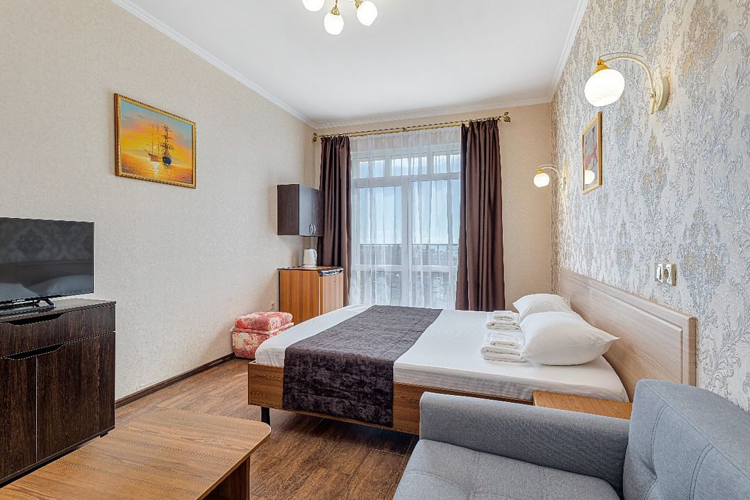 Двухкомнатный номер с большим балконом. Вид на море.