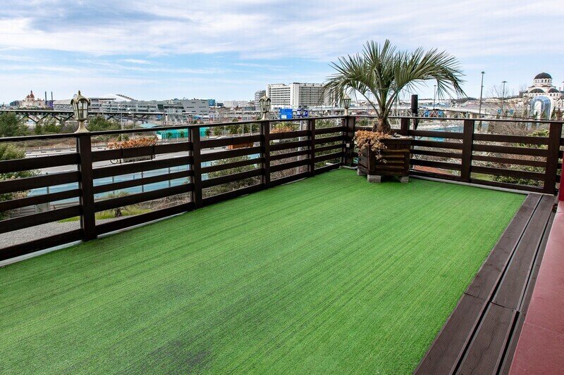 Апартамент-студия с террасой площадью 30 кв.м с видом на сад и парк. Подходит для размещения 3 человек. (2 основых места и 1 дополнительное). Апартаменты с приятным интерьером.