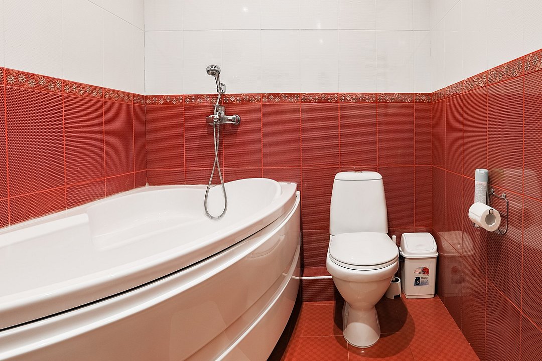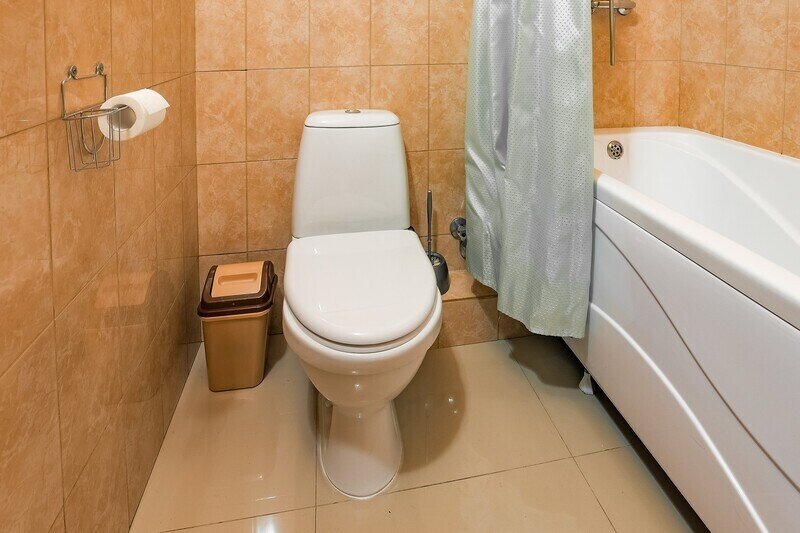 Индивидуальная ванная комната: ванна, раковина, туалет.