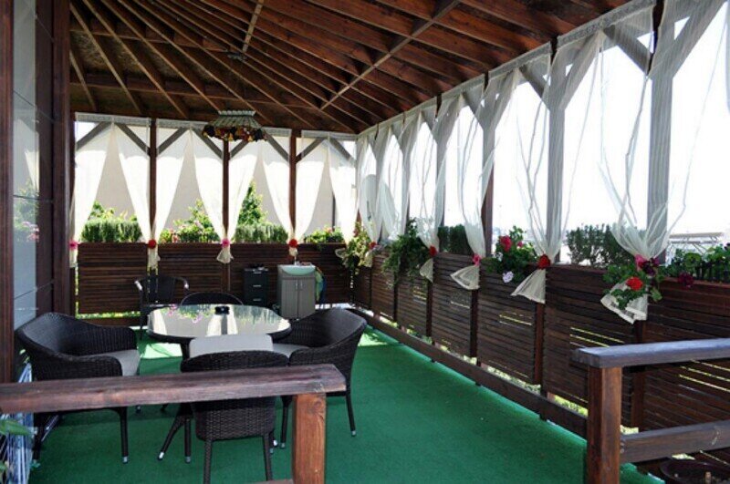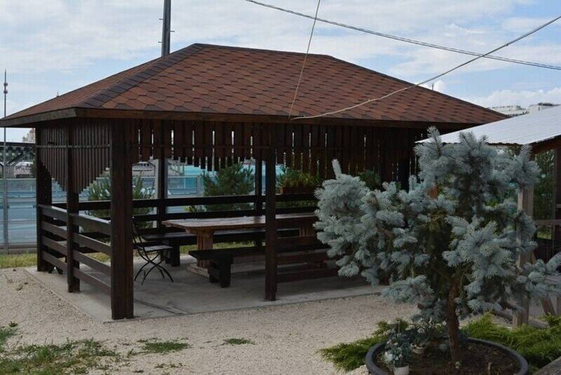 Семейный отдыхДостоинстваПровели здесь почти 2 недели. Несмотря на пик сезона, хозяева тепло встретили и помогли с размещением. Они всегда на месте и решают любые вопросы. На территории большой бассейн, беседка, мангал и небольшой сад для детских игр. Мы жили в отдельном деревянном домике, где было чисто и уютно. Можно готовить на общей кухне или в номере. В домике есть холодильник, телевизор, мебель. Ванная комната с небольшой ванной, что удобнее душевых кабин. Лучше приезжать сюда на машине, есть своя парковка.