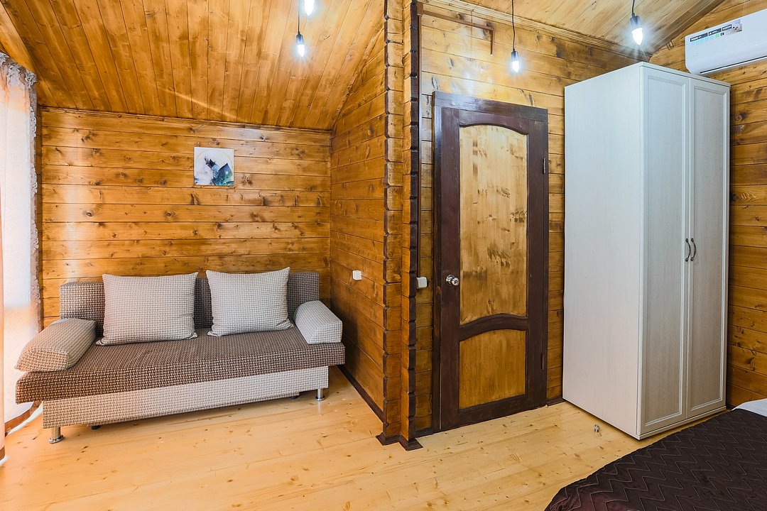На территории также предоставляются отдельные четырёхместные жилые домики, построенные из экологически чистых материалов, с мини-террасой и всем необходимым для комфортного пребывания. В числе удобств — микроволновая печь, чайник, фен и гардеробная. Из ряда номеров открывается вид на бассейн.