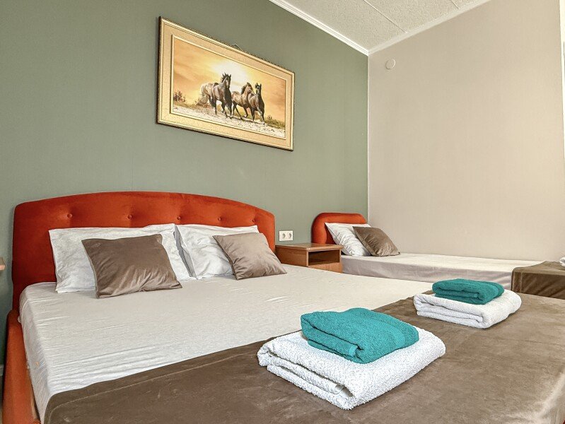 Одна односпальная кровать, одна двуспальная кровать, одна диван-кроватьВ номере