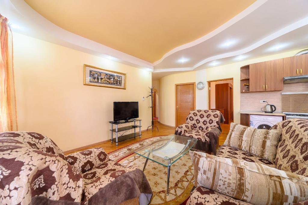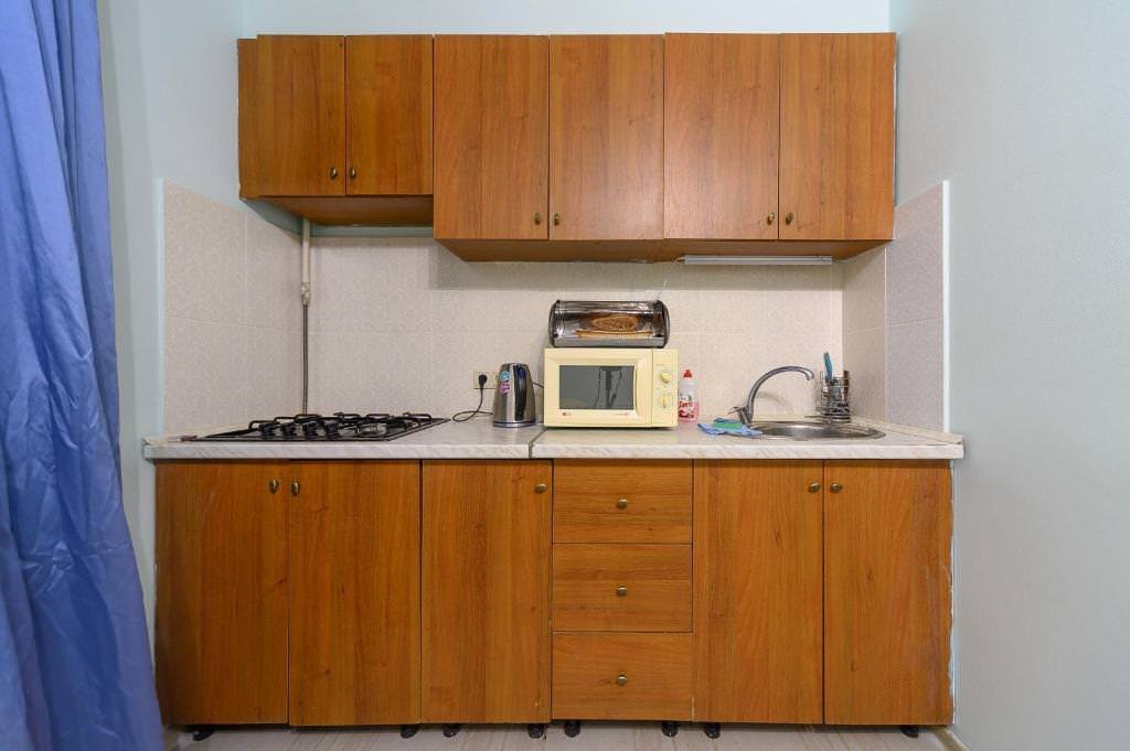 Имеется телевизор, кондиционер, отопление, шкаф, вешалка, журнальный столик, кухня, посуда, столовые приборы, СВЧ, чайник, холодильник, газовая плита, стулья, фен.