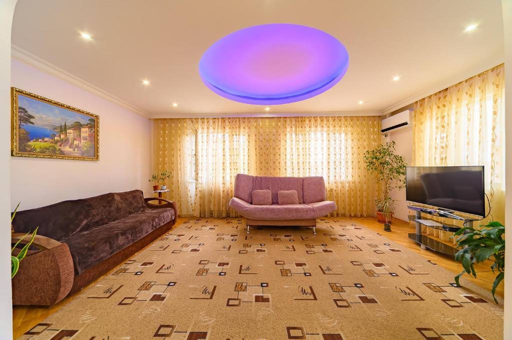 В номере: 1 двуспальная кровать, 3 двуспальных дивана, 1 двухъярусная кровать, 1 детская кровать.