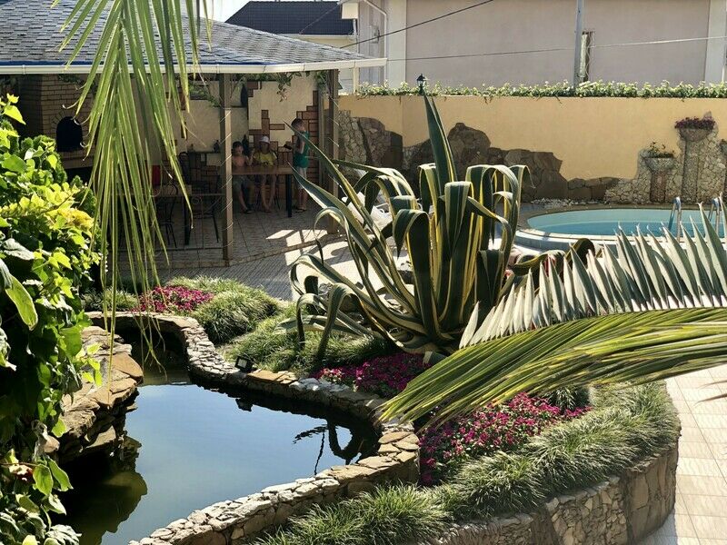 июль 2022 г.хороший, спокойный отдыхОтдыхал с 21.07.2022 по 31.07.2022. Добраться с аэропорта на остановке "В Сочи" (при выходе налево) на автобусе под номером 105 (105э, 105с) до остановки "Пансионат Фрегат". Рекомендую ехать на 105Э, доезжает быстрее. Оплата только у водителя, вход через переднюю дверь. Цена билета наличкой -32, по карте - 28₽. При выходе с автобуса двигаемся вверх по дороге справа. Движение вверх в горку будет тяжеловато для пожилых или с детьми (с вещами), особенно в жару. Два поворота и на месте. Во дворе бассейн, небольшой, плескаться для детей. С 21:00 производиться очистка бассейна. Рядом с бассейном мангальная зона, шезлонги, небольшой водопадик (был включен один раз). Во дворе уютно, красиво. Комнаты находятся в 3-х этажном здании, на каждом этаже по 3 комнаты. Возле комнаты пластиковые стулья и стол (при перемещении стола, держать за ножки), электрический чайник, сушилка. В комнате: кровать, раскладной кресло-кровать, две тумбочки, стол, шифоньер (плечики есть, сейф), телевизор, холодильник, по 2 кружки и стаканы, кондиционер. В ванне тазик, фен. Полотенце - 3 шт., меняются раз в неделю. Кухня со столовой в отдельном здании, посуды в достаточном количестве, микроволновка. На заметку, после 19:00 вывешенные полотенца и купальные принадлежности к утру не высыхали. Хозяйка Анна - доброжелательная, приятная, всегда готова помочь. Пляж находится в 15-20 минут ходьбы. Рекомендую ходить подальше, к пляжу "Коралл": чище вход в море, отдельно места для курения, чистый туалет, краники для питьевой воды, для мытья ног, бесплатный WI-FI, постоянно находятся спасатели, лежаки по 200₽. Поплавать на САП-БОАРДах только к Ксении, классная девчонка - расскажет, объяснит, бесплатно сама сплавает и пофоткает в море. Питание в столовых, комплексные обеда по 250₽. Красное и Белое находится недалеко, но к 11:00 с холодильников сметают все. Перекресток, Магнит в шаговой доступности, к вечеру на кассах большие очереди. Напротив К@Б узбекская кухня, рекомендую, вкусный плов, манты, чебуреки, лепешки (расчет только наличными). Ближе к пляжу плов продает дед, у него дешевле, но не сравним с узбекским. В одном из торговых магазинах после Дельфинария, женщина продает сыр, дешевле чем у других и находится в холодильнике, у других на витрине ничем не прикрыт. Попробовать маринованный сыр! Экскурсии не брал. Самостоятельно в Сочи-парк, Роза-хутор, Сочи. В Сочи на морском вокзале, предлагают морскую прогулку за 1500 (могут снизить цену). Каждый час или два отправляется на такую же прогулку теплоход за 700₽. Дельфины лучше на сап-бордах, несколько раз плавали недалеко, с берега можно было разглядеть.