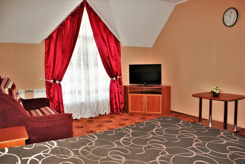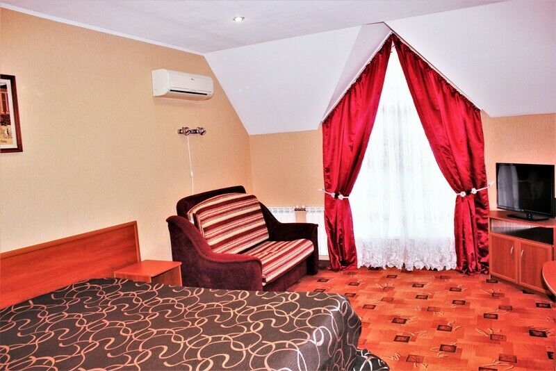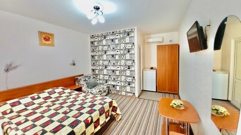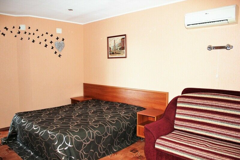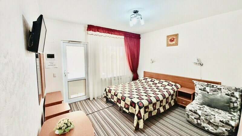Номер с 1 кроватью и раскладным кресло-кровать (возможно одно дополнительное место) со всеми удобствами.