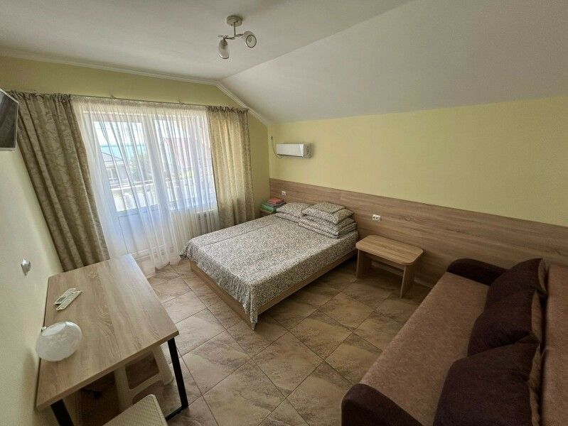 Четырехместный номер со всеми удобствами и лоджией. Номер оснащен кондиционером, холодильником, телевизором и большой лоджией.