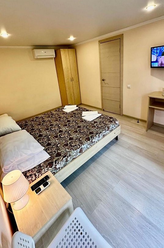 Двуспальная кровать, ТВ, кондиционер, диван односпальный, с/у с душем. Отдельный вход.