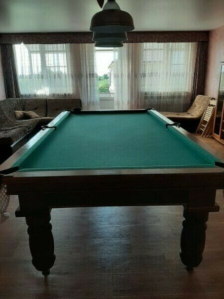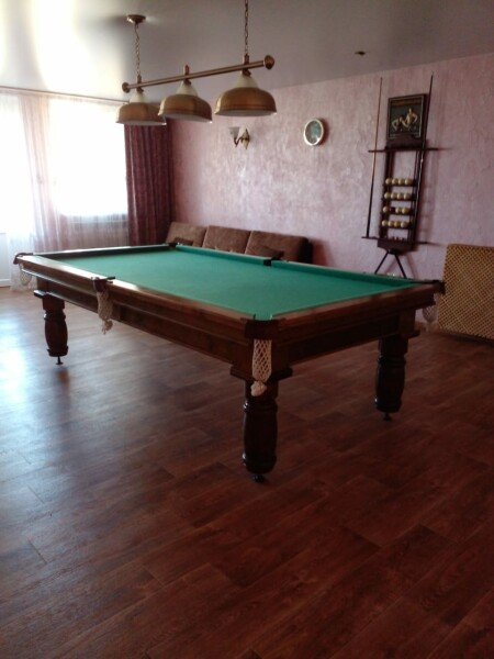 Отдельно стоящий дом. 140 м2. 3 спальни (двуспальная кровать с возможностью размещения трёх дополнительных спальных мест) и одна мансардная комната (можно разместить 2 дополнительных спальных места). Комната отдыха с бильярдом и выходом на террасу с отдельной кухней, а так же имеются: телевизор, кондиционер, стол, стулья, WI-FI, санузел. На территории отеля имеется стиральная машина, столовая, предоставляются услуги массажиста.