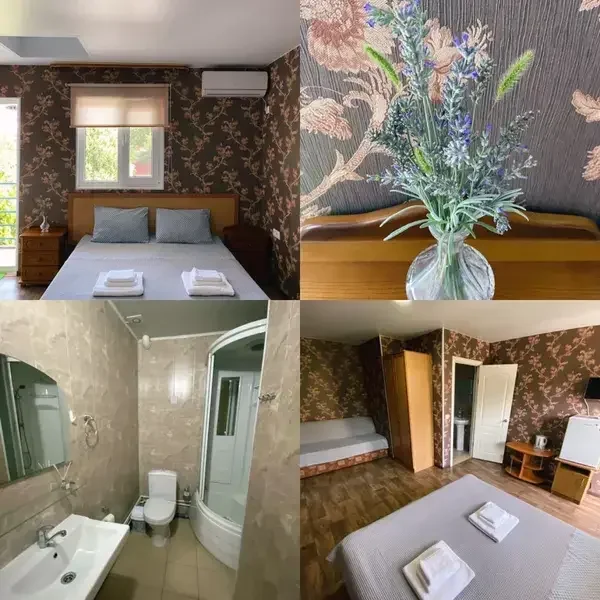 Номерной фонд состоит из 10 уютных комнат, оснащенных всем необходимым для комфортного отдыха. В каждом номере для вас подготовлены удобные кровати с хлопковым постельным бельем и набором полотенец, телевизор, кондиционер и бесплатный Wi-Fi. А собственный санузел оснащен душевой кабиной.