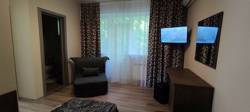 Полулюкс двухместный площадью 18 кв.м с балконом с видом на город и улицу. Подходит для размещения 3 человек. (2 основных места и 1 дополнительное).