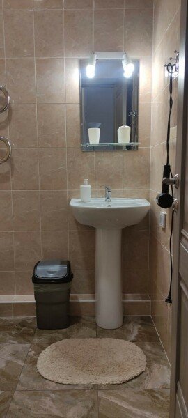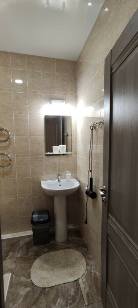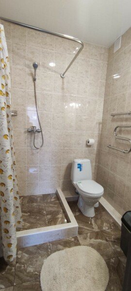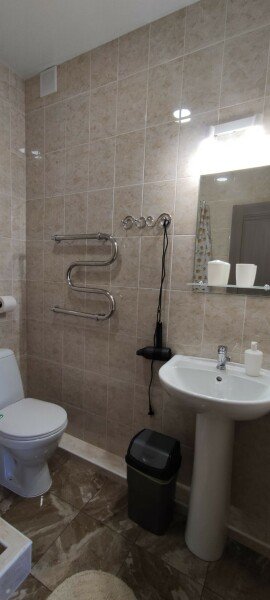 Индивидуальная ванная комната: душ, раковина, туалет.