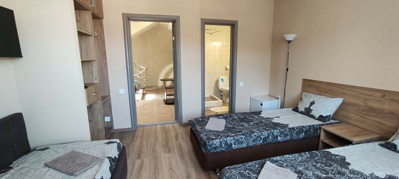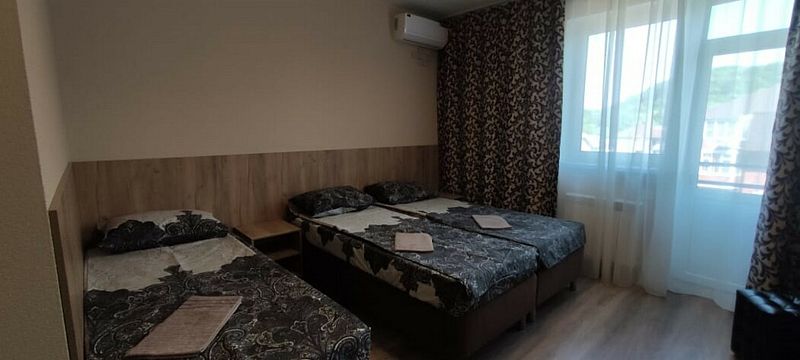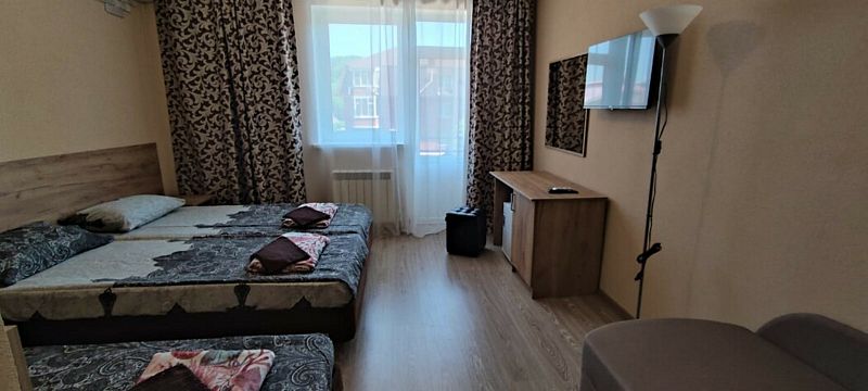 В номере: 2 двуспальные кровати, 1 кресло-кровать.