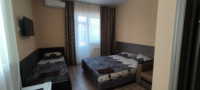 В номере: 1 двуспальная кровать, 1 односпальная кровать.