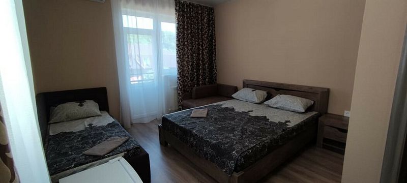 В номере: 1 двуспальная кровать, 1 односпальная кровать, 1 кресло-кровать.