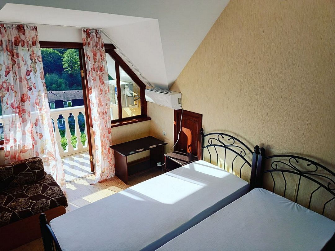 Четырехместный номер класса «эконом» площадью двадцать квадратных метров с видом на горы. Подходит для размещения четырёх человек и располагает спальней с уютным интерьером.