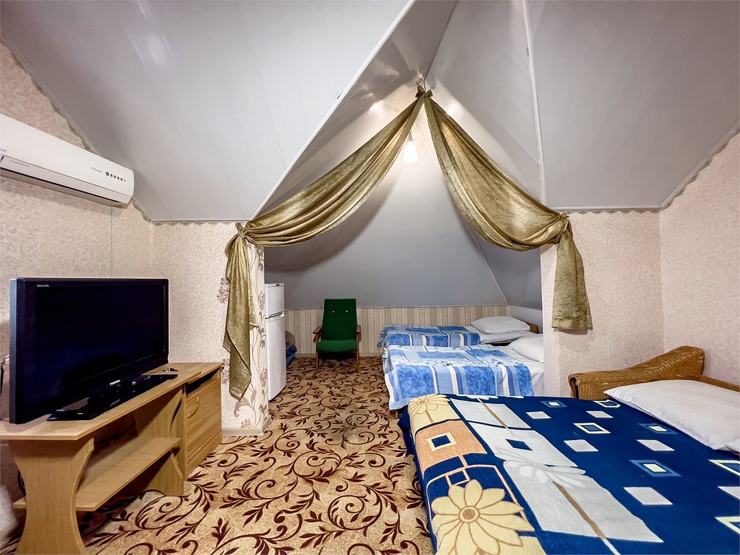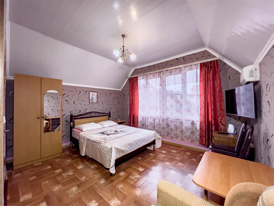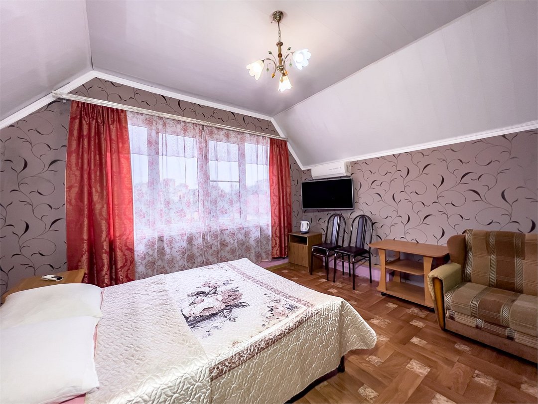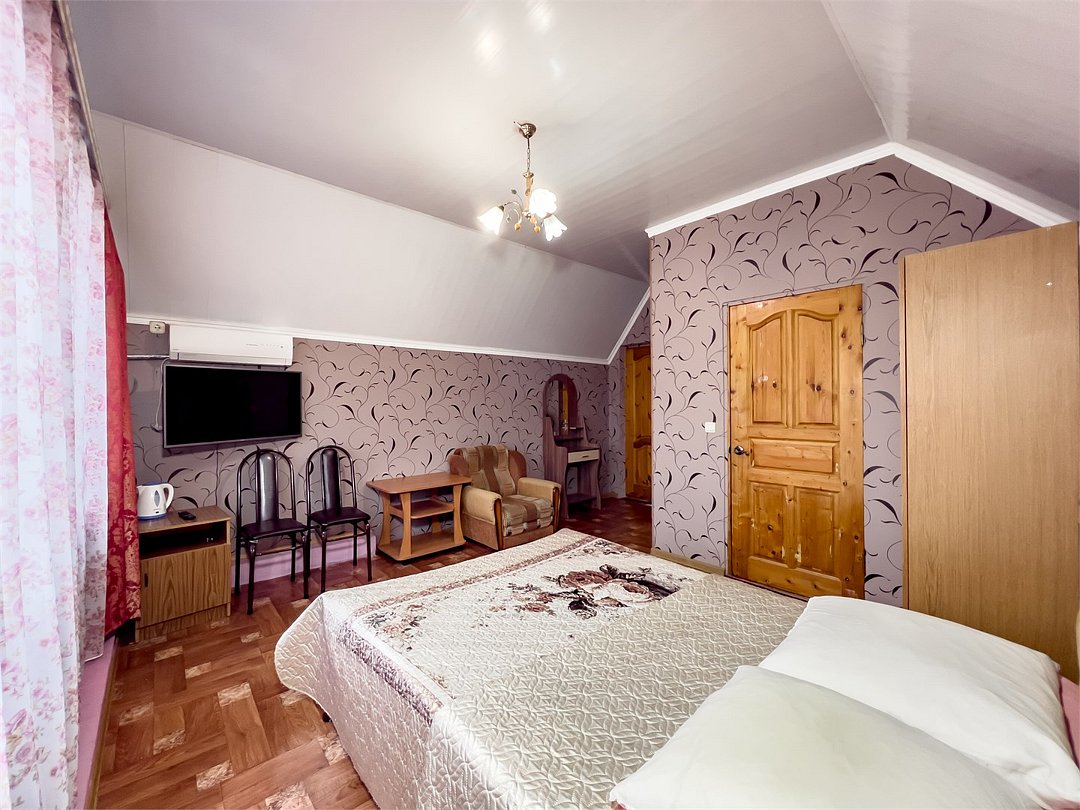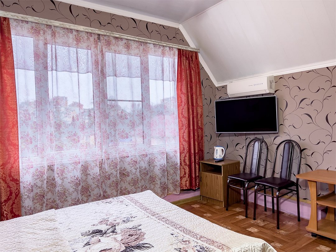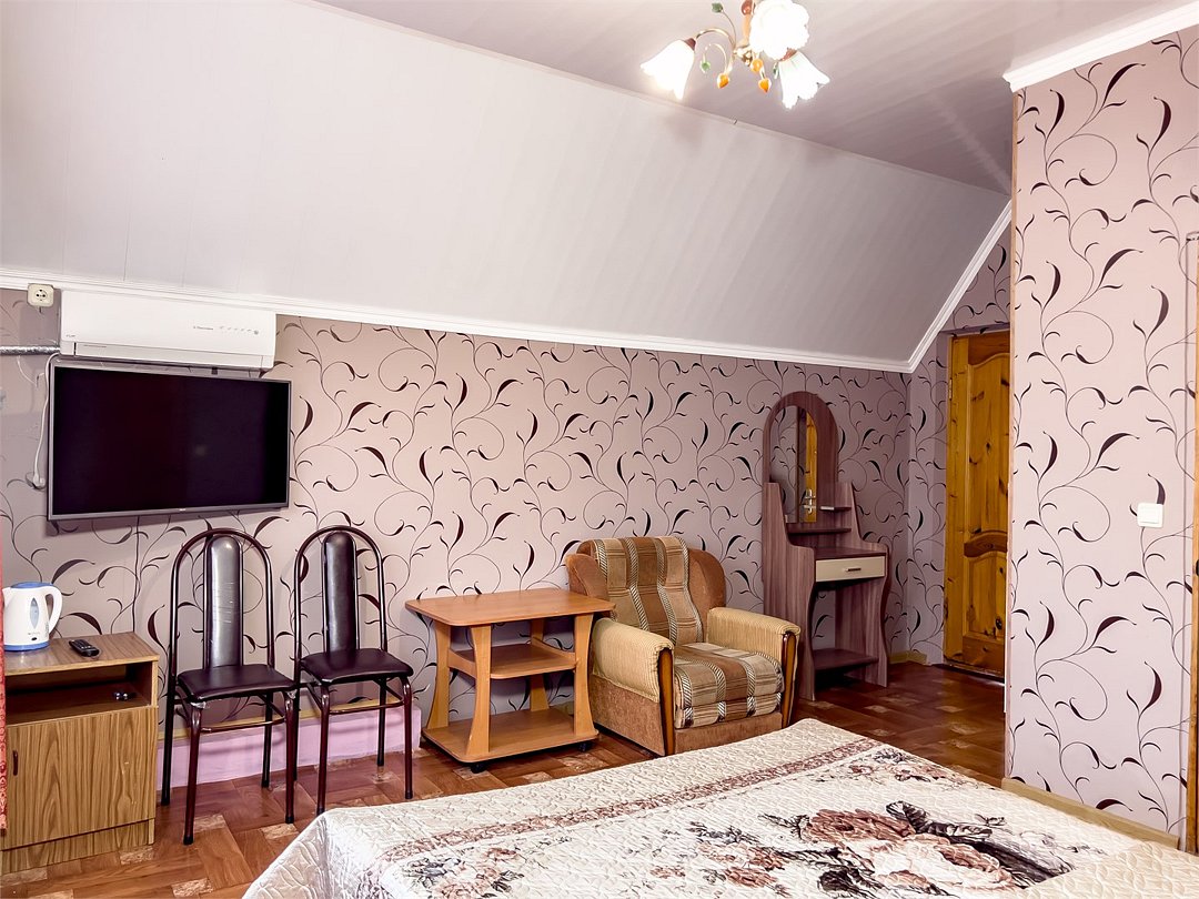 К проживанию предоставляются комнаты на разное количество человек в большом доме. Во всех номерах предоставлены отличные спальные места, кондиционер, телевизор и красивый вид из окна.