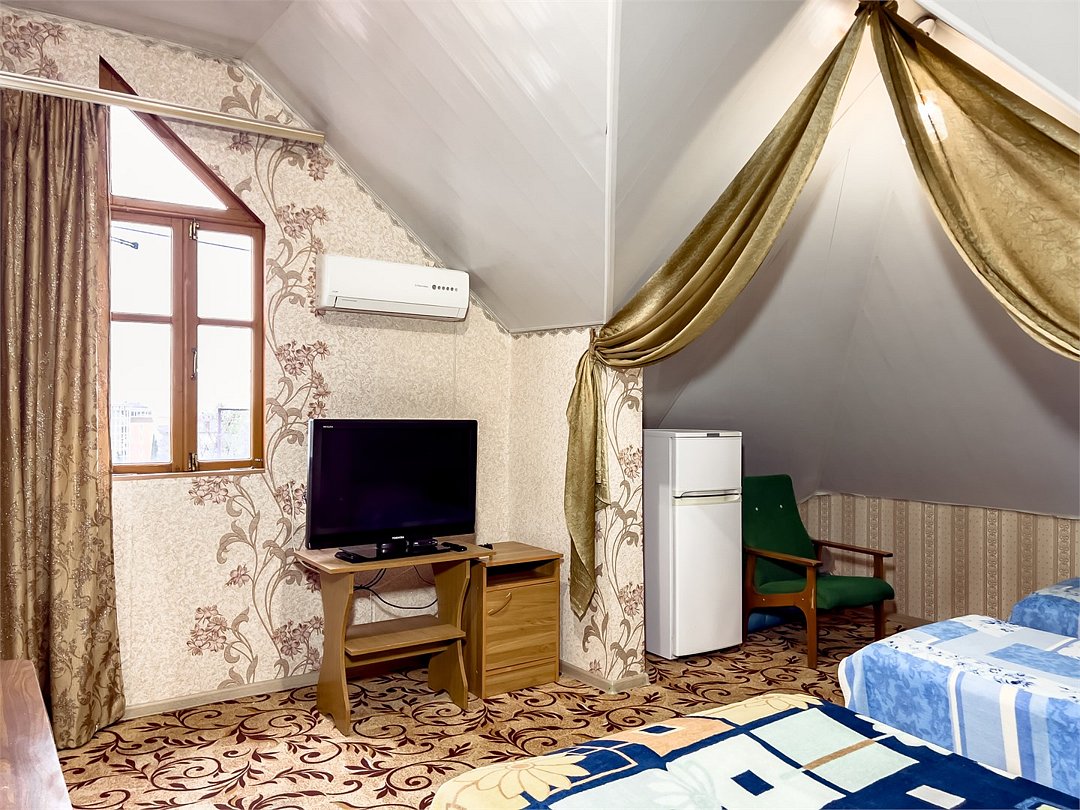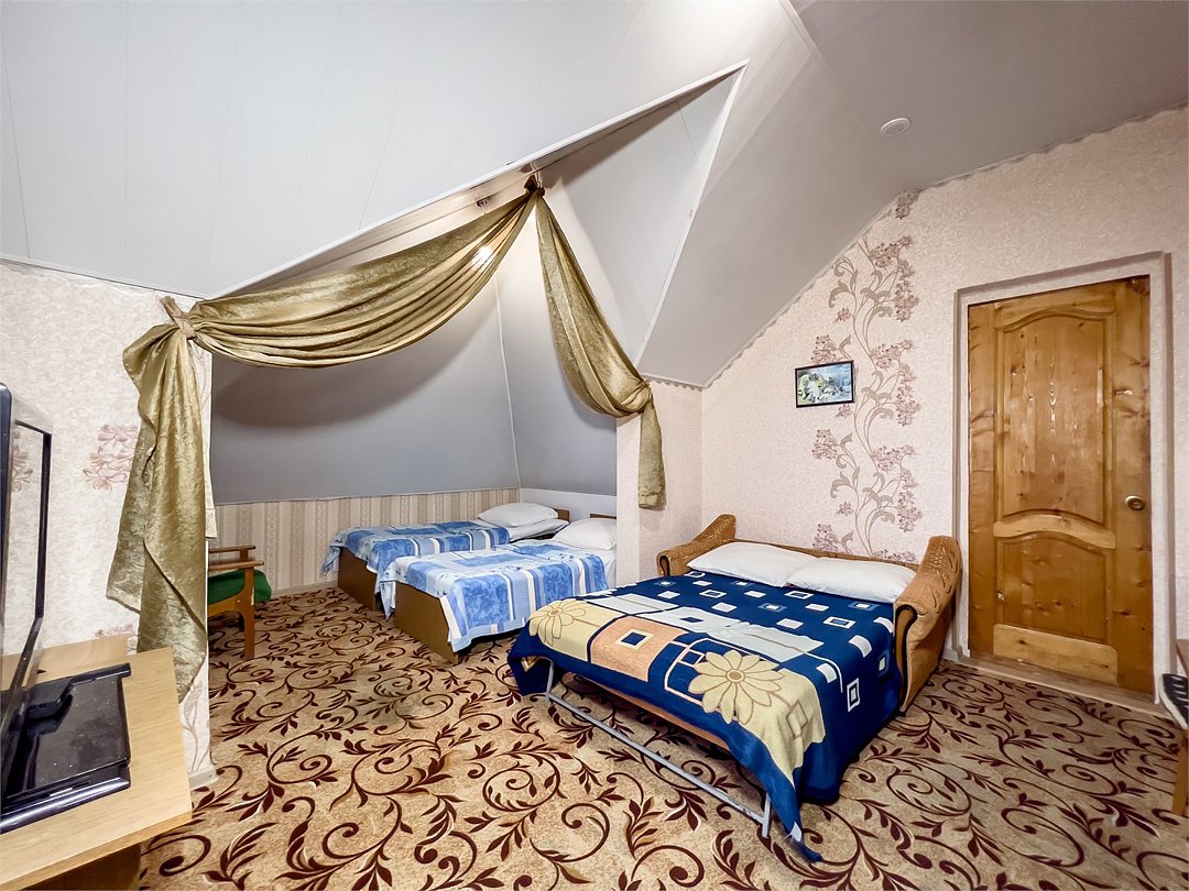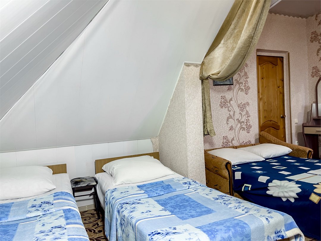 2 Односпальные кровати + двуспальный диван как основное место,К,Х, TV, с/у и душ на этаже, на два номера.