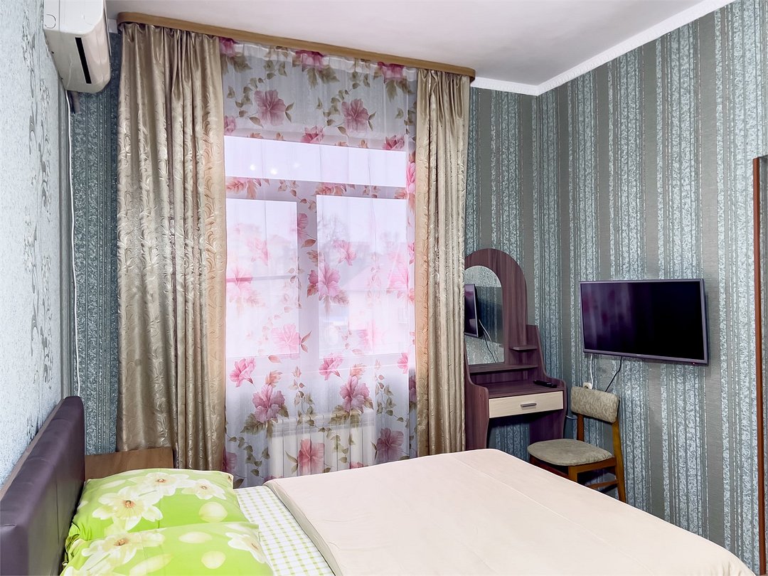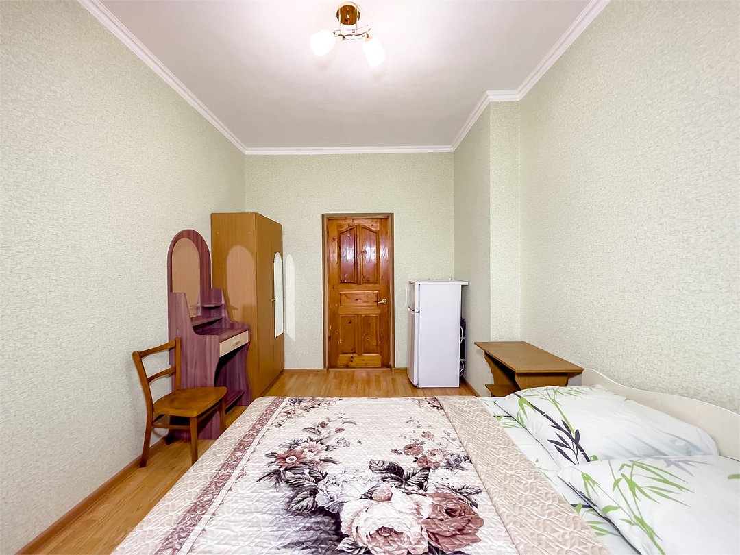 телевизор, Wi-Fi, холодильник, кондиционер, фен, банные полотенца, две односпальные кровати, тумбы, стулья, шкаф для одежды, зеркало, чайник, вид на город, общая ванная комната, вид во двор, ламинат, туалетные средства, санузел на этаже, цифровое тв, москитная сетка, душ на этаже, номер для некурящих, двуспальный раскладной диван-кровать, уборка номера, вешалки-плечики, мылоВ гостиничном номере