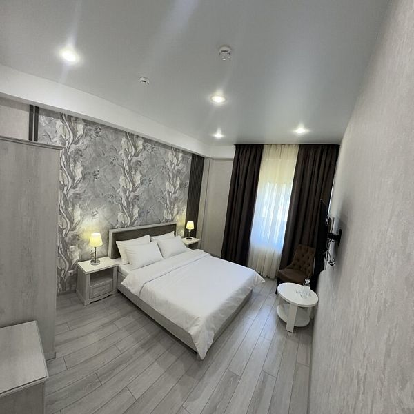 Уютный однокомнатный номер с одной двуспальной кроватью.