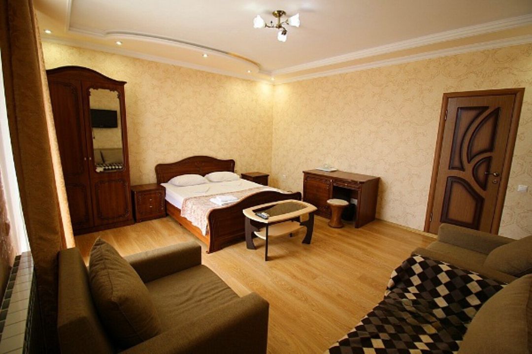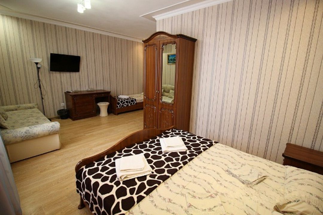 Одна односпальная кровать, одна двуспальная кровать, одна диван-кроватьВ гостиничном номере