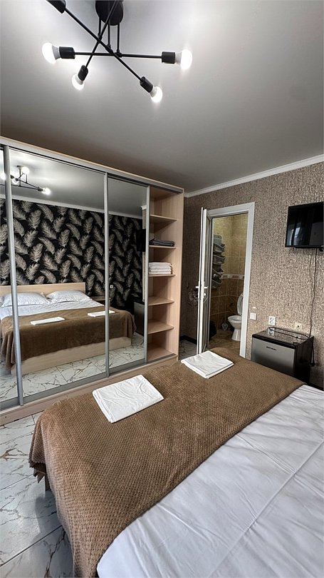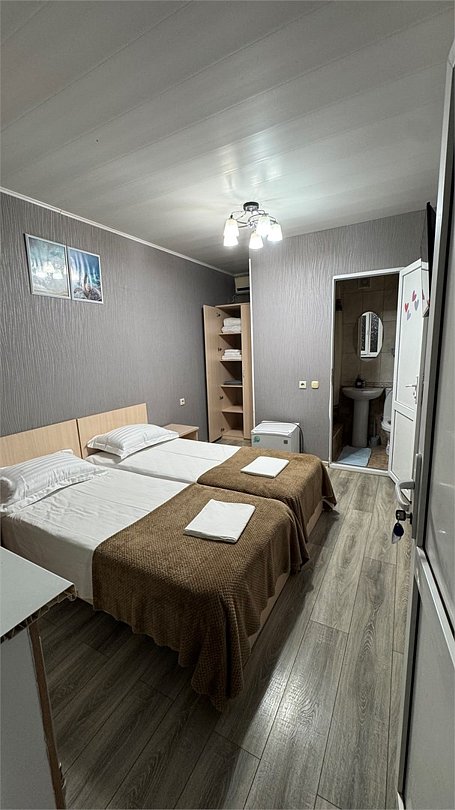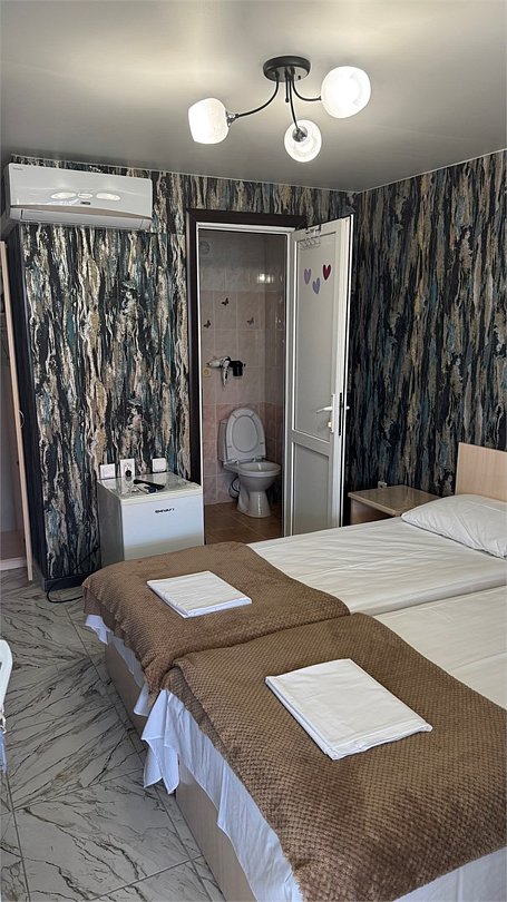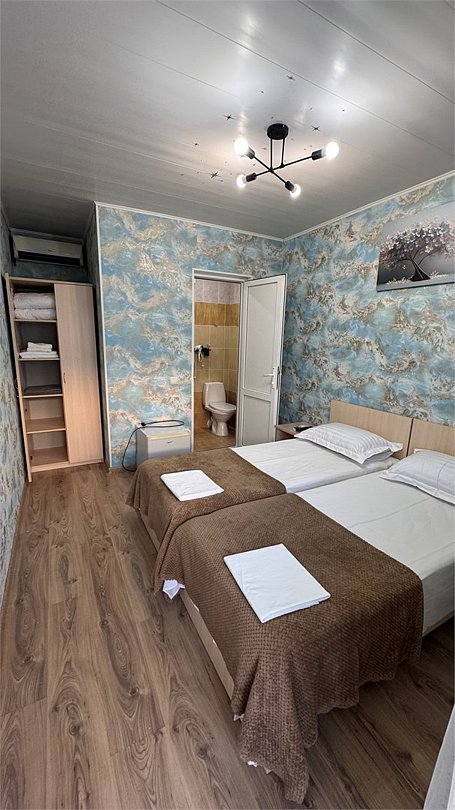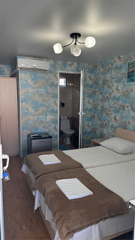 Двухместный номер «Стандарт» с душевой, двумя раздельными кроватями с ортопедическими матрасами и шкафом. Номер оснащен кондиционером, холодильником, феном, телевизор. Бесплатные туалетные принадлежностиУслуги и удобства
