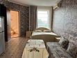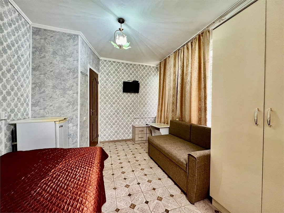 Wi-Fi, холодильник, банные полотенца, двуспальная кровать, диван, тумбы, стулья, шкаф для одежды, вешалки, журнальный столик, зеркало, унитаз, отдельный вход в номер, душ, плиточное покрытие, вид во двор, стаканы, туалет, сплит-система, диван-кровать, раскладной диван, телевизор с плоским экраном, вешалки-плечики, частный двор, мыло, можно с питомцамиВ гостиничном номере