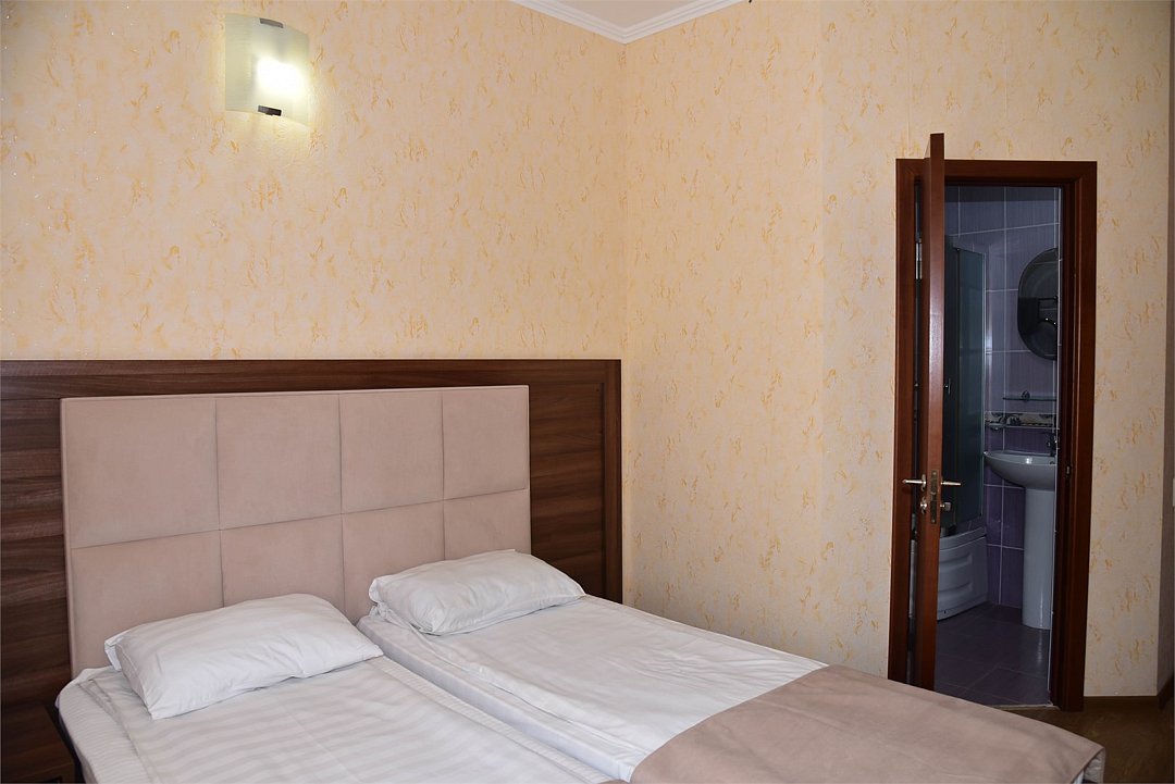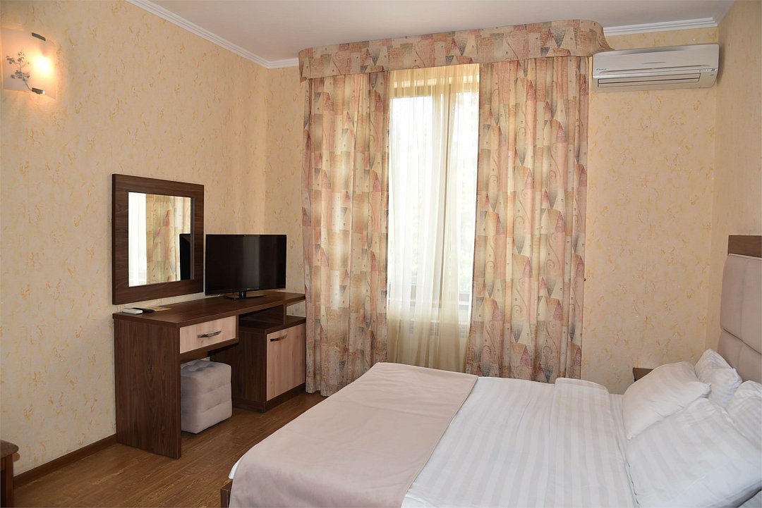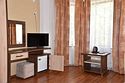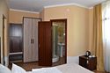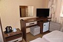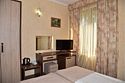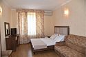 2 местный номер с двумя раздельными кроватями. В номере телевизор, мини-холодильник, кондиционер, шкаф, тумбочки,журнальный столик,санузел в номере, без балкона.Двухместный номер с двуспальной кроватью