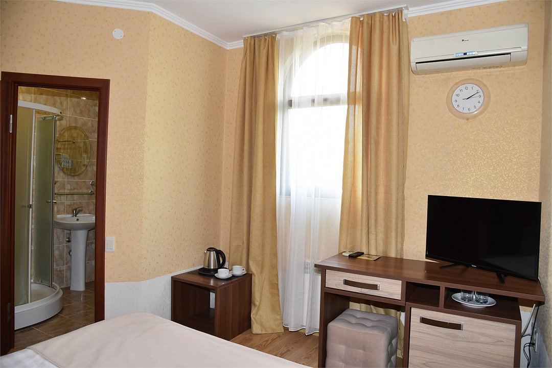 В номере санузел, кондиционер, телевизор, мини холодильник, чайник