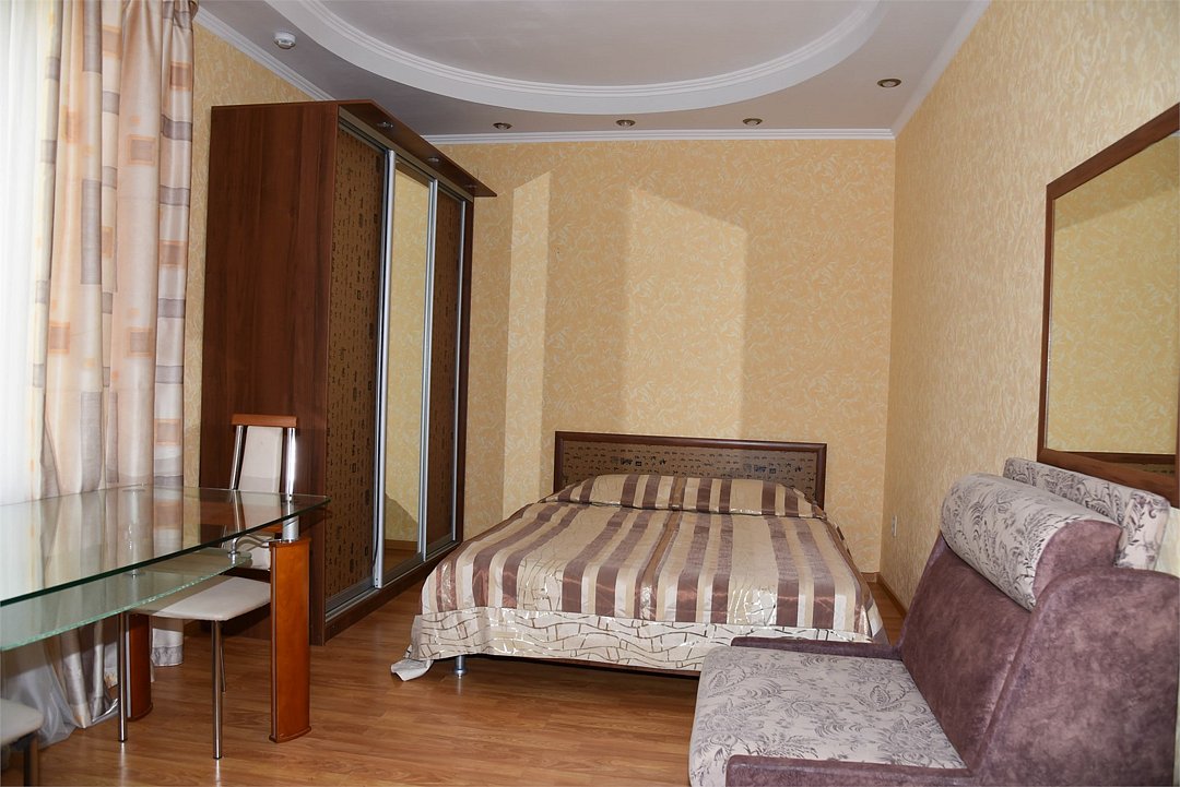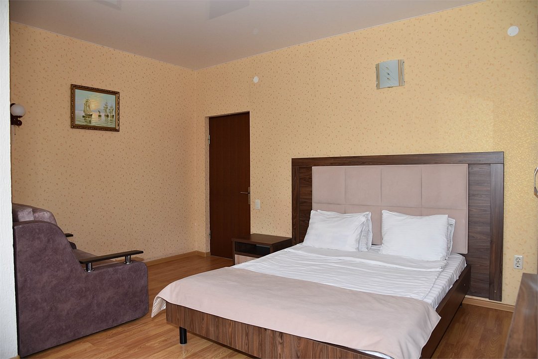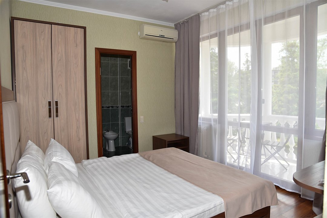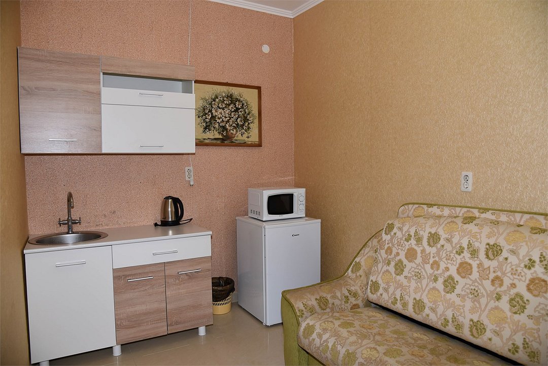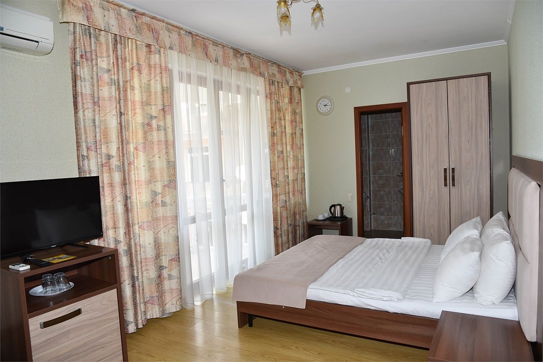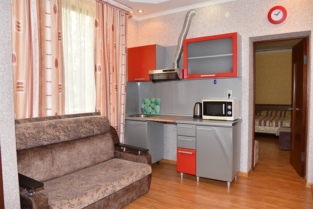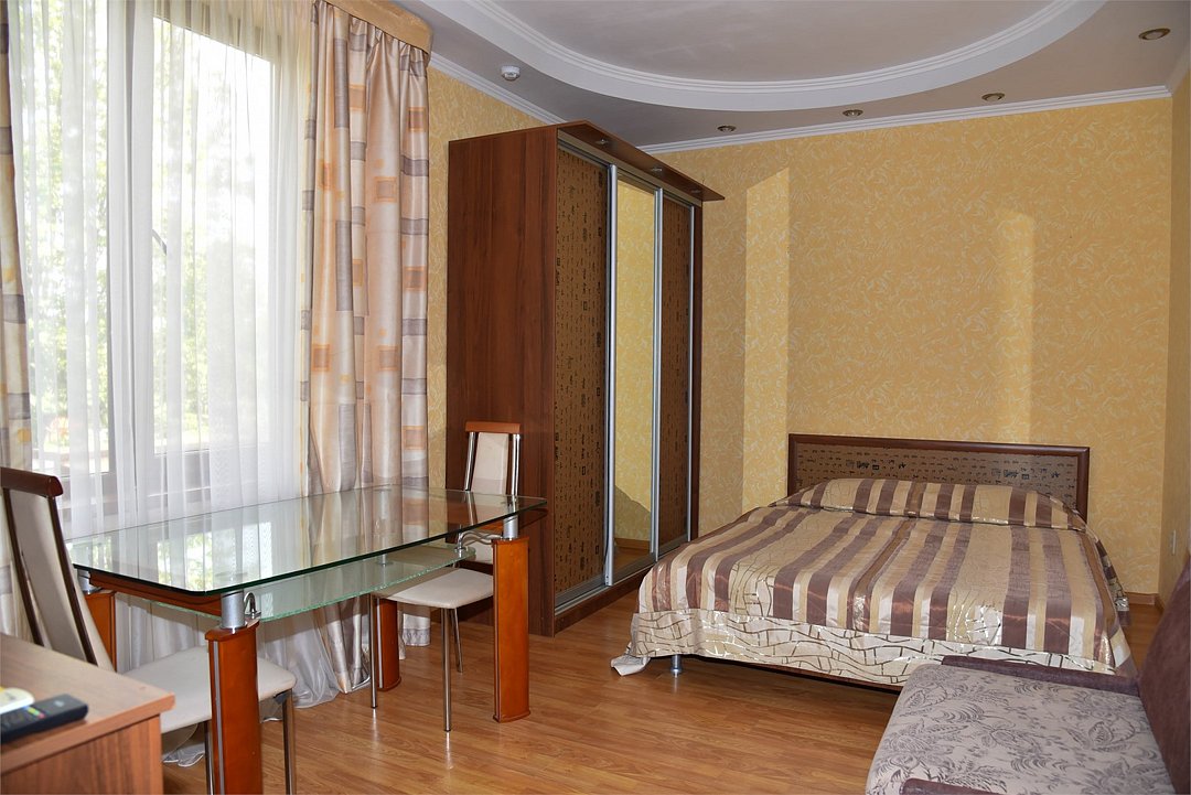 В гостевом доме имеются стильные номера с европейской мебелью, площадью от 18 кв м до 45 кв м, 2-х, 3-х, 4-х, 5-ти местные, двухкомнатные и трехкомнатные апартаменты с индивидуальными мини-кухнями.
