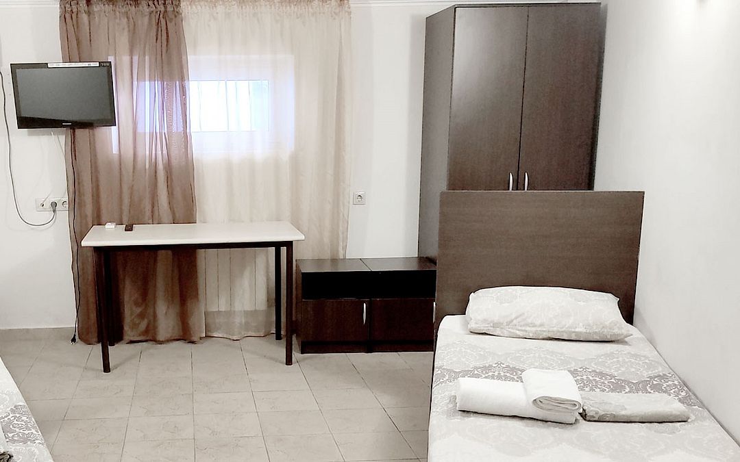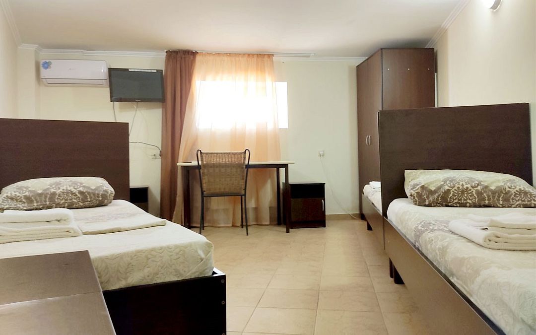Однокомнатный номер эконом-класса, общей площадью 18 м². Предназначен для размещения одного до четырех гостей. Оборудован односпальными кроватями, кондиционером, телевизором, шкафом для одежды, тумбочками. В двух ванных комнатах, расположенных рядом на этаже и расчитанных на три номера имеется душевая кабина, туалет, мойдодыр, гигиенические принадлежности.Услуги и удобства