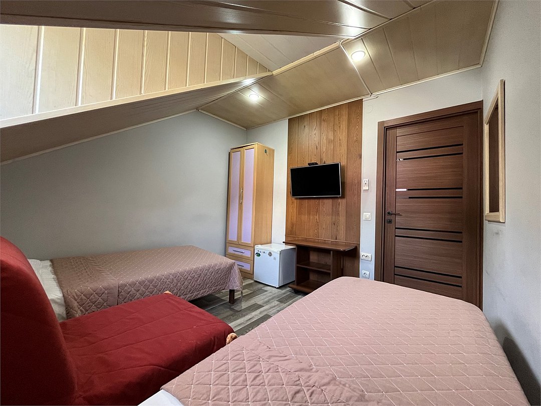 В номере две односпальные кровати и диван-кровать 1.40, душ туалет в комнате, в номере телевизор, холодильник, кондиционер, Общая кухня, мангал, стиральная машинка. Бесплатный WiFiУслуги и удобства