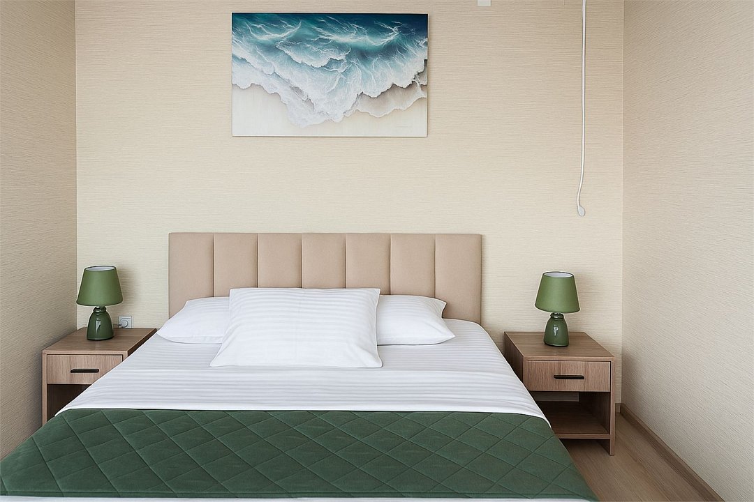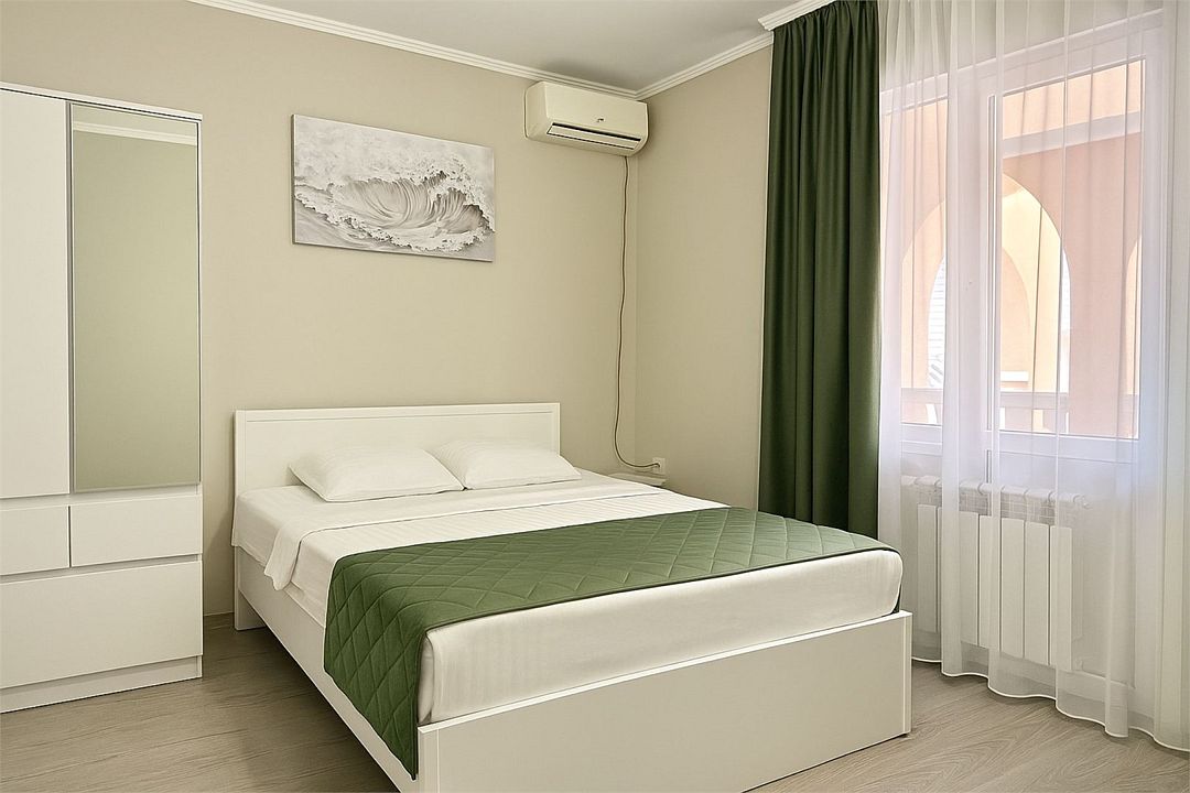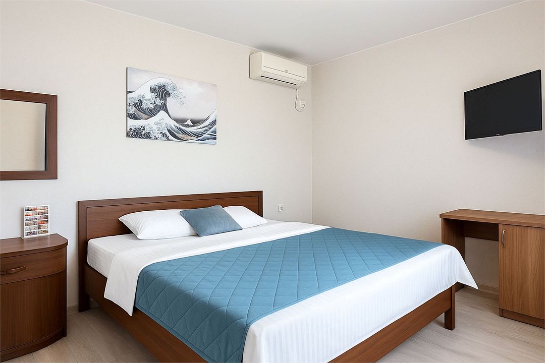 Однокомнатный номер площадью 16-18 кв.м., рассчитан на два основных места. В комнате предусмотрено наличие либо одной двуспальной, либо двух односпальных кроватей. Номер оборудован всем необходимым для комфортного проживания: холодильник, телевизор, кондиционер,фен, душ в номере. Для удобства гостей предоставляем пляжные полотенца, тапочки и гигиенические принадлежности.Услуги и удобства