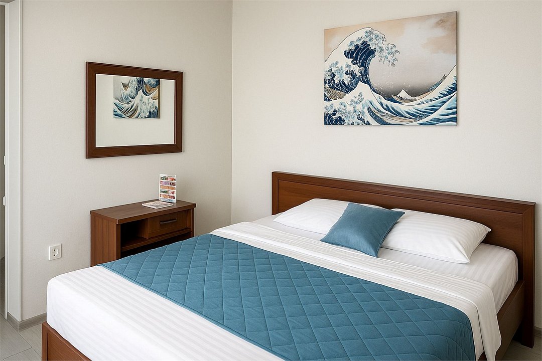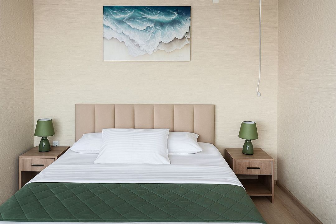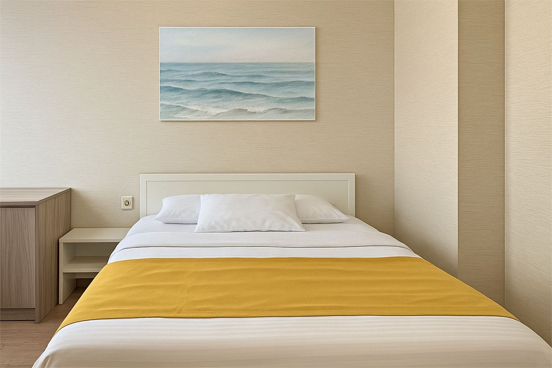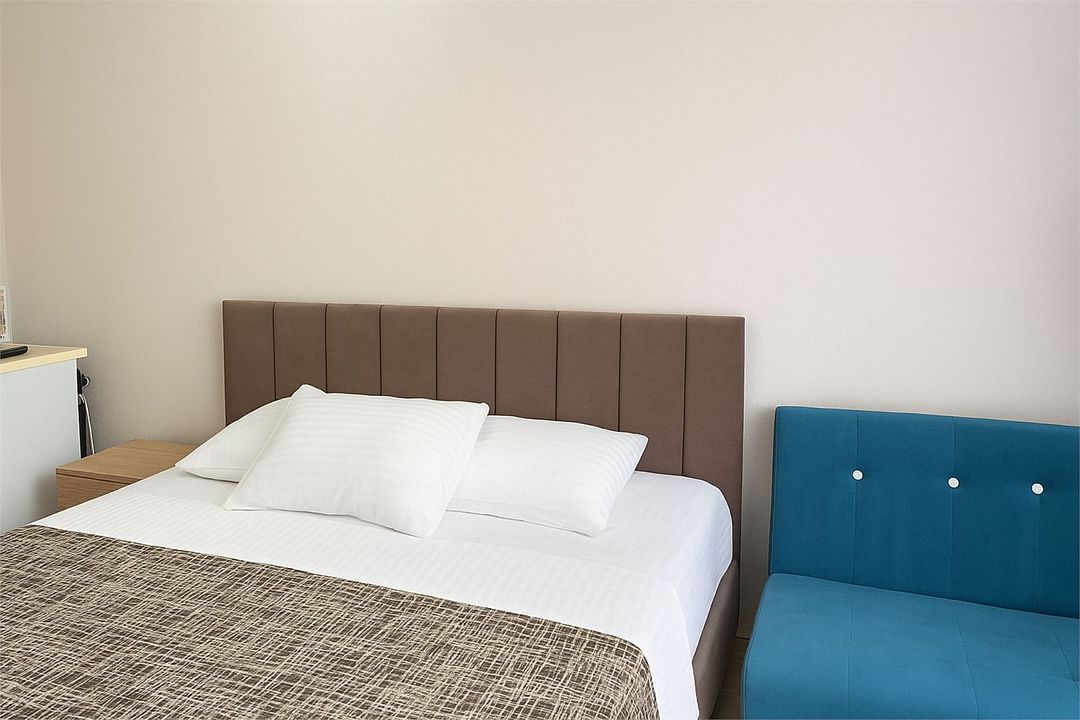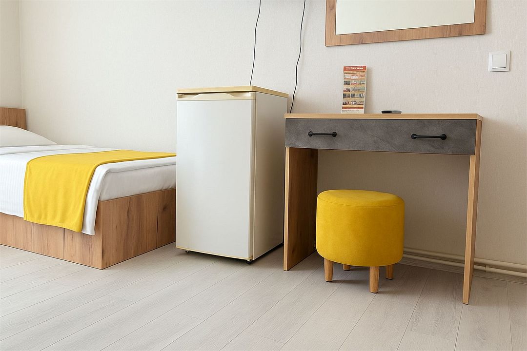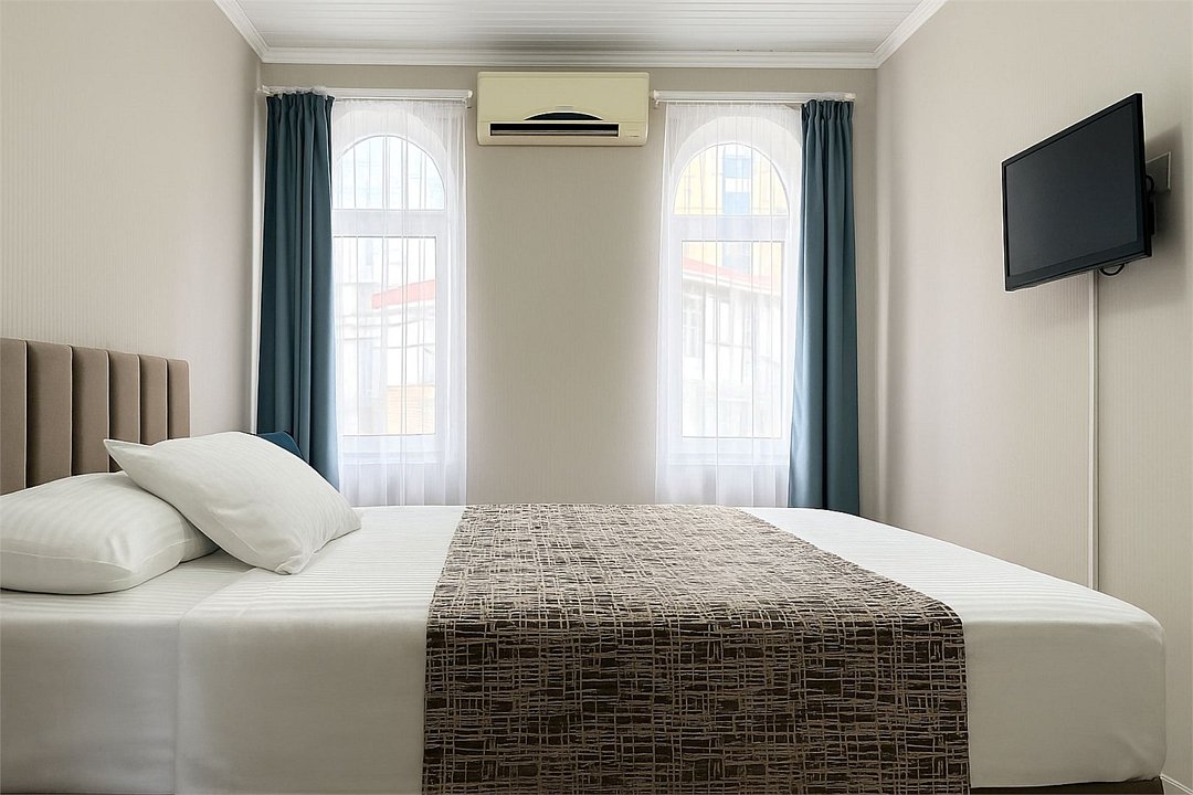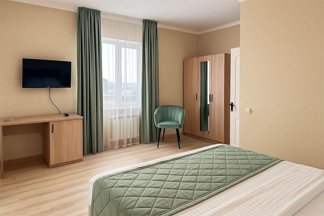 Однокомнатный номер площадью 16-18 кв.м., рассчитан на два основных места. В комнате предусмотрено наличие либо одной двуспальной, либо двух односпальных кроватей. Номер оборудован всем необходимым для комфортного проживания: холодильник, телевизор, кондиционер, душ совмещенный с туалетом в номере.Услуги и удобства