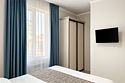 кабельное телевидение, Wi-Fi, холодильник, ванная комната, санузел, банные полотенца, две односпальные или большая двуспальная кровать, шкаф для одежды, вешалки, зеркало, унитаз, раковина, душ, сплит-система, телевизор с плоским экраномВ номере