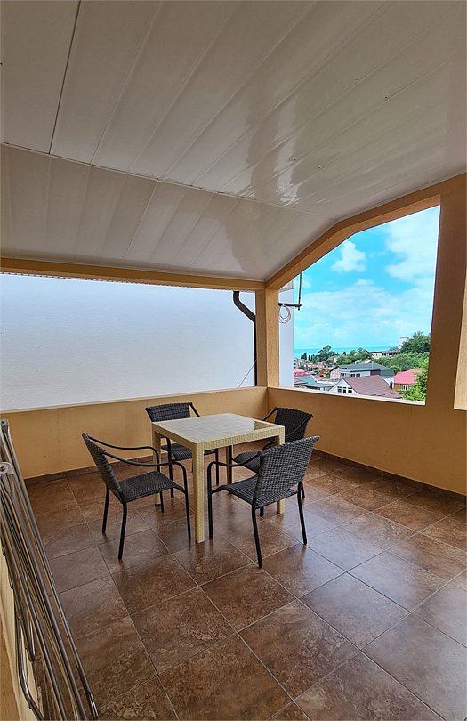 Трехместный номер категории "стандарт" 2й этаж с выходом на общую террасу, вид с террасы на горы, боковой вид на море, детскую площадку.Услуги и удобства