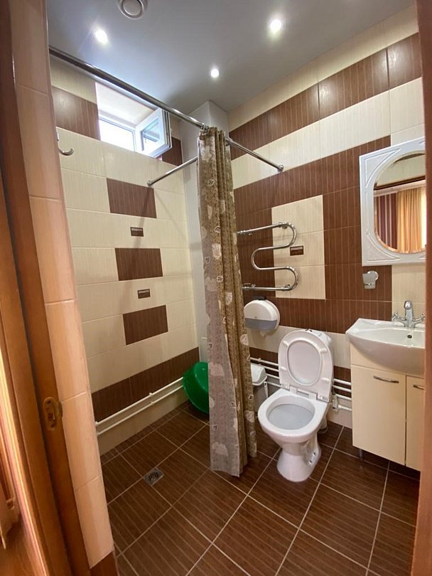 Уютный номер 19 кв.м. с удобным зонированием, предусмотрено всё для комфортного и полноценного отдыха: уютная кровать, холодильник, телевизор, мини холодильник. Номер с балконом. В номере предусмотрено дополнительное место на 1 гостя. В гостевом доме есть общая кухня, оборудованная всем необходимым, газовые плиты, микроволновка, чайники, посуда,холодильники и прочая кухонная утварь. Уютный двор.Услуги и удобства