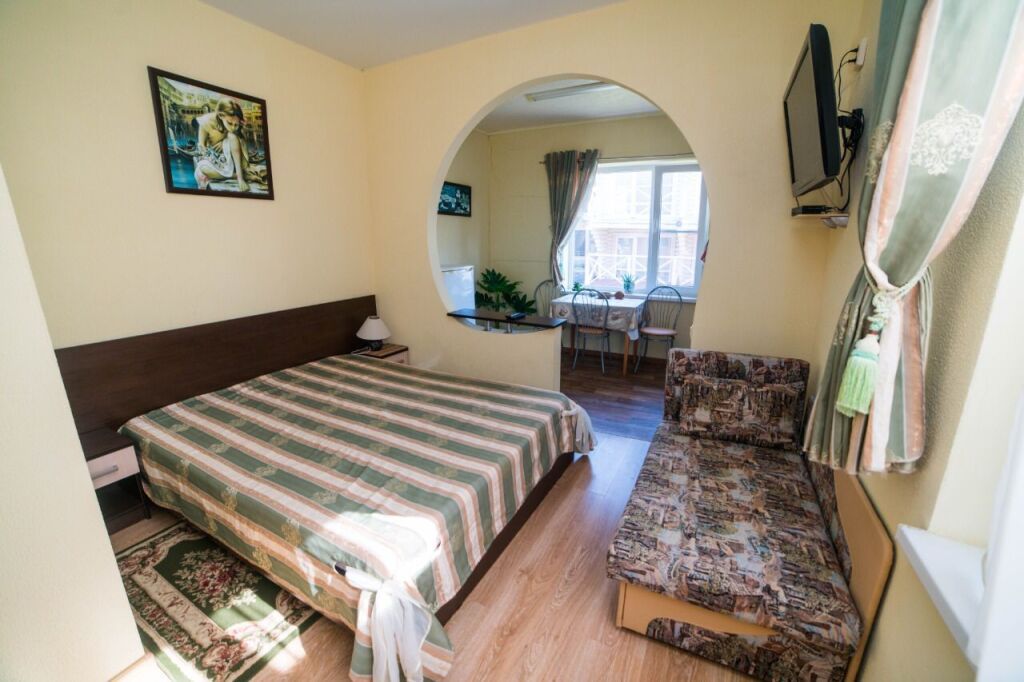 Двухместная студия с балконом и с красивым видом из окна двуспальная кровать