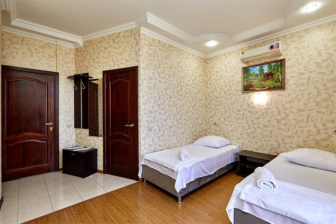 Wi-Fi, холодильник, кондиционер, светильник, фен, утюг, душевая кабина, банные принадлежности, тапочки, две односпальные кровати, шкаф для одежды, обеденный стол, зеркало, отопление, плиточное покрытие, ламинат, стул, туалетные средства, туалет, цифровое тв, телевизор с плоским экраном, москитная сетка, вешалки-плечики, частный двор, онлайн-регистрацияВ номере