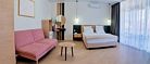 Апартаменты находятся на втором этаже со своим отдельным входом В вашем распоряжении: - Большая терраса 12 кв.м. со своей обеденной зоной и видом на бассейн - Двуспальная кровать - Диван на одного гостя - Удобная мини-кухня с микроволновой печью, холодильником, чайником и кофемашиной - Ванная комната оснащённая тропическим душем - Халаты для взрослых и детей, премиальная косметика для душа, тапочки, полотенца для бассейна, фен, утюг. - Умная колонка - Апартаментами можно управлять при помощи системы «Умный дом».Услуги и удобства