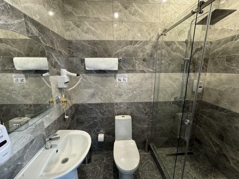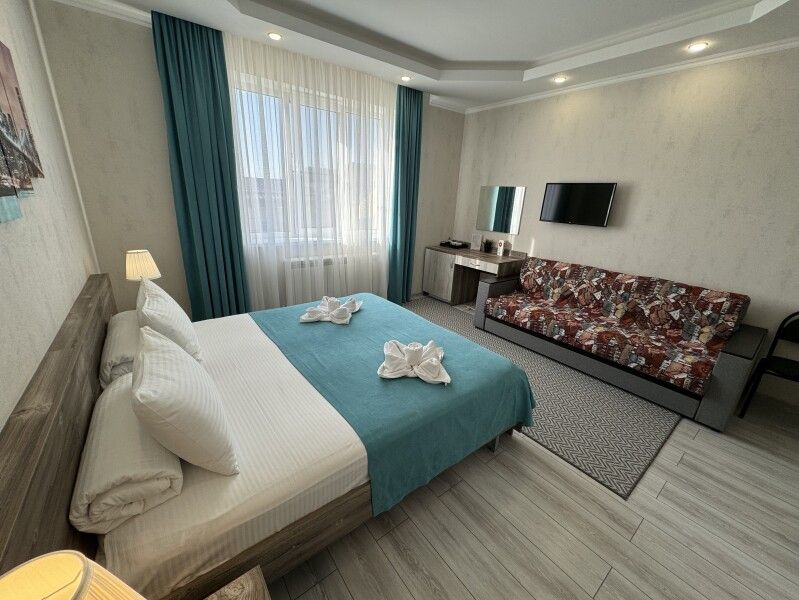 Номера просторные и светлые, шикарный вид из окон на порт города. Удобные матрасы и не жаркое одеяло)) В номере есть шампунь,мыло,гель для душа и тапочки. На этаже стоит куллер с водой. Персонал отеля очень приятный и заботливый,регулярно интересовались нашими потребностями. Мы чувствовали себя желанными гостями.