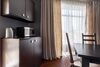 В некоторых номерах имеется кухонная зона с обеденным уголком. Попробовать блюда европейской, и кавказской кухонь постояльцы могут в любом из двух ресторанов.