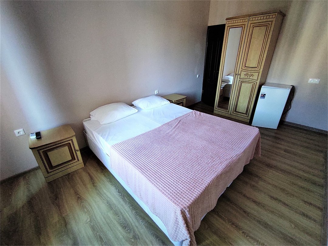 Этаж 1,2 или 3. Площадь номера: 16-18 кв.м. Количество основных мест: 2. Количество дополнительных мест: 1 (раскладная кровать) В номере: санузел (душ, туалет, умывальник, фен, тапочки, туалетные принадлежности), ТВ, холодильник, кондиционер, двуспальная или две односпальные кровати, шкаф для одежды, тумбы, стол, стулья.Услуги и удобства