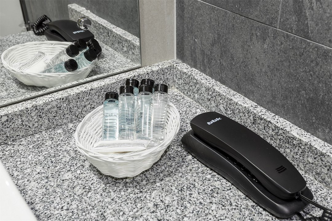 Wi-Fi, холодильник, кондиционер, фен, электронные замки, утюг, халаты, банные полотенца, тапочки, балкон, две односпальные или большая двуспальная кровать, шкаф для одежды, зеркало, сейф, чайник, унитаз, раковина, душ, вид во двор, ламинат, две ванные комнаты, раскладное кресло, внутренний телефон, телевизор с плоским экраном, гостиничная парфюмерия, номер для некурящих, чайная станция, вешалки-плечики, без питомцевВ гостиничном номере