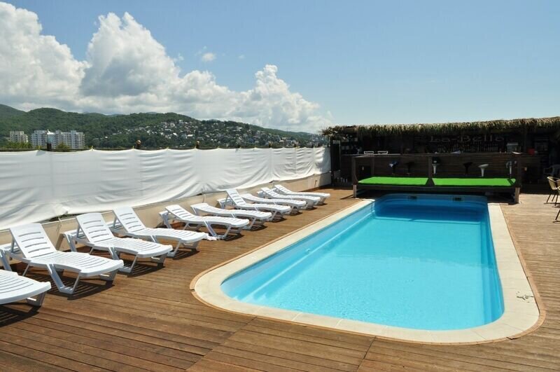 Тип бассейна: открытый бассейн, бассейн на крышеРядом с бассейном: шезлонги, бар у бассейнаГостевой дом «Троя» — первый дом с бассейном на крыше в Лазаревском. Большой бассейн с прекрасным панорамным видом на весь курорт Лазаревское не оставит вас без приятных воспоминаний.